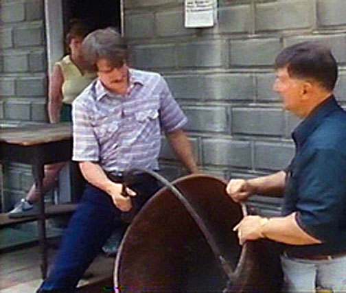 We arrived in the community several weeks prior to the sale to discover as much as we could about the activities we wished to film. For example, we knew that a large apple butter kettle was to be sold.