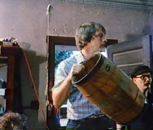 Our initial editing actually began while we were still shooting with screenings of our "rushes" at the house Chris Musello and Ben Levin had rented. And then later that summer, we began in earnest. We made an arrangement with Gei Zantzinger, our benefactor and fellow filmmaker, to use his editing machine. That meant we would be editing in the basement of his lovely country home in Great Valley, PA instead of the sterile editing suites that are normally available. As we were all academics, the editing had to be truncated in order to fit with our teaching schedules. We first worked until the fall semester began and then met periodically over the academic year 1983-4 and then again fulltime during the summer of 1984. I suppose that the editing took longer than it would have if we have been a traditionally hierarchical group with one person having the final say. Instead we discussed, debated and at times fought over every decision - great or small. There were times in which the fabric of this collaboration was sorely tested. Here is one example. Aibel, Musello and myself wrote the voice-over narration that begins the film. We had a very difficult time agreeing upon how much we could generalize about estate sales. I wanted to say they were commonplace throughout the U.S. and Musello argued for a much more geographically narrow generalization. Aibel was fairly neutral. In the end, the narration was very limited as to how much this estate sale is similar to others. This argument took longer than it should but we still managed to continue our cooperative model. In addition I was constantly frustrated with the limits of established documentary customs. There were times when I wished to point out things that an audience could not know but if they did it would enhance their understanding of the event they were watching. An example of this would be the scene in which Joe Herman attempts to convince an auction goer to buy a basket he has just bought. To know that the auction goer was a local minister would make this scene has much more meaning. Today we can make these comments available through this document.
