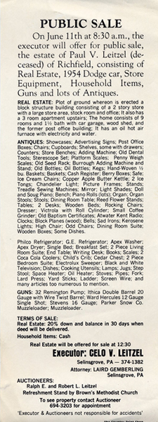 We contacted Paul Leitzel's son, Celo, a Lutheran minister in nearby Selinsgrove, PA to ask his permission to make the film about his father's estate sale. As executor of his father's estate, Celo had the authority to grant permission without consulting anyone. Instead he discussed the idea with his sister, Lura and other family members. They all agreed to allow us to film. The sale was scheduled for June 11, 1983.