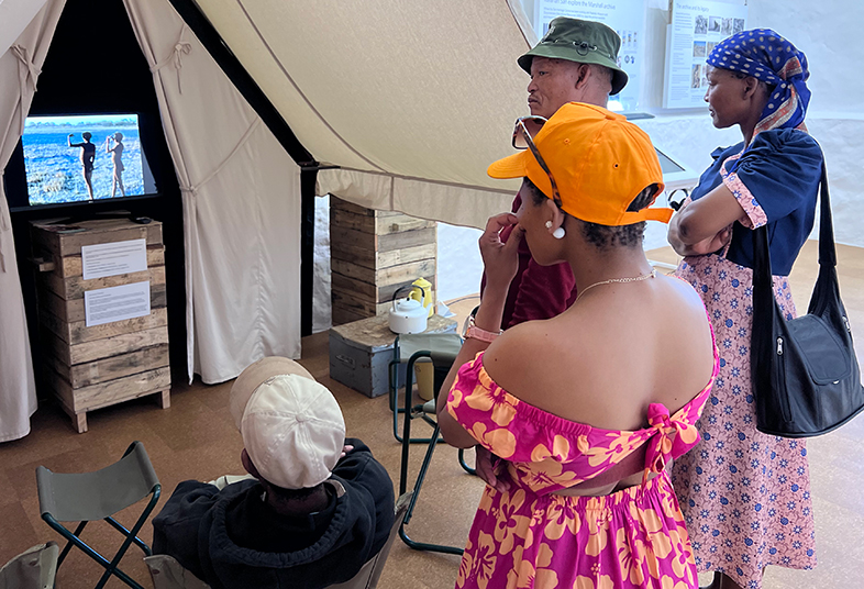 Visitors at the opening of Bringing Back the Archive at the !Khwa tuu San Cultural Center