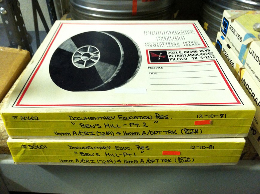 In addition, we found masters and print materials of several other films which we’ve returned to their makers. For instance, the Academy Award-nominated Ben’s Mill was returned to John Karol, so it could be preserved by the Academy. We also donated a large amount of workprint to local film schools to aid in teaching the fundamentals of 16mm film editing, and to the newly formed local film collective AgX, for use in filmic experimentation.