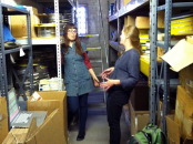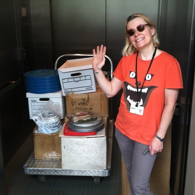 - Liz Coffey of Harvard Film Archive with a cart full of materials for Vermont Kids and other Marshall films