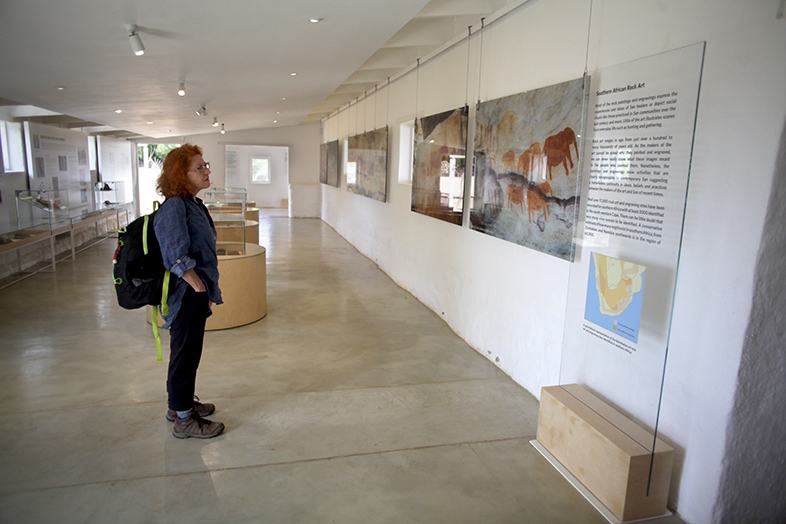 While at !Khwa ttu we also had a chance to meet with board members, staff and interns. I was particularly fascinated by how the museum is forging a pan-San sense of belonging. During our visit, we also learned that in addition to the Marshall Archive exhibit, the museum also houses extensive permanent exhibitions that explore the many facets of San cultures past and present. Works draw on the spiritual expressions and beliefs of San cultures, material cultures and artistic practices – from rock art to contemporary painting – and the socio-historical and political context is explained, including an examination of colonial history.