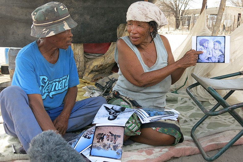 From there, we traveled North to Namibia to the Ju/hoansi community in Nyae Nyae, where John Marshall filmed and worked as an activist for the community, on and off, for over 50 years. We reconnected with people who had worked with John (like Tsamkxao Chief Bobo) and also made new contacts with the younger generations. At the heart of this part of our journey were the many opportunities to share and talk about the films and photos, in formal and informal contexts.