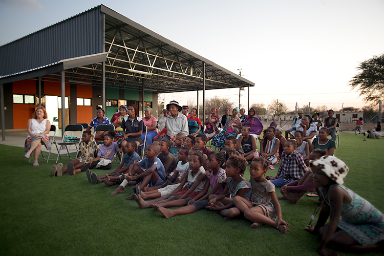A screening of A Kalahari Family for the Ju/'hoan community in Tsumkwe, Namibia. Photo by Frank Aveni