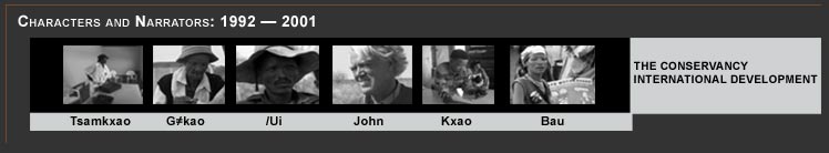 Ju/'hoansi endure their cattle being killed by lions and their water pumps being destroyed by elephants. In 1994, Ju/'hoansi vote unanimously to dismiss the directors of the foundation, but their action does little to stop natural resource development or the money pouring in to implement it. In 1996, with promises of great wealth, Ju/'hoansi vote to establish a nature conservancy. What did they really understand about the policy they were endorsing? The film ends in the year 2000 when conservancy members receive a meager 75 Namibian dollars (approximately $10.50 US) each – their profit from two years of trophy hunting. As more farms fail, many people are forced to return to the squalor and disease of Tjum!kui.